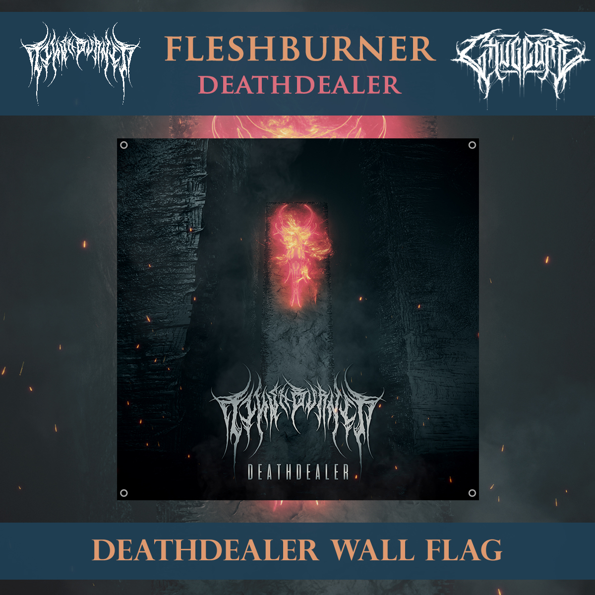 The wall flag will be a square size featuring the album artwork, along with the band logo & album title. The wall flag will be approx. 3 ft. x 3 ft. in size and features grommets in each corner for easy hanging.