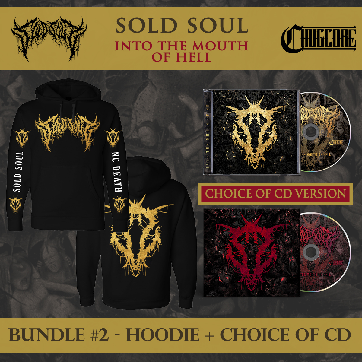 This bundle features the Sold Soul Hoodie + choice of CD version of the release. Choose between the standard jewel case version with the original "Gold" cover, and the limited digipak version with the "Red" cover (limited to 100). To see what other bundles we have available please visit: www.tiny.cc/SoldSoulMerch