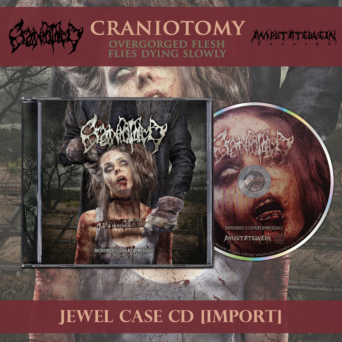 Part of our most recent pickup from Amputated Vein/Ghastly Music we have a bunch of new imported releases for all fans of heavy slam. The 5th album of the Slovak Brutal Death Metal band Craniotomy entitled 'Overgorged Flesh Flies Dying Slowly'. From the heart of the Europe, Craniotomy brings a mix of slam, and also brutal blast-beat blasphemy of the typical Craniotomy style. This album was released in July 2015.