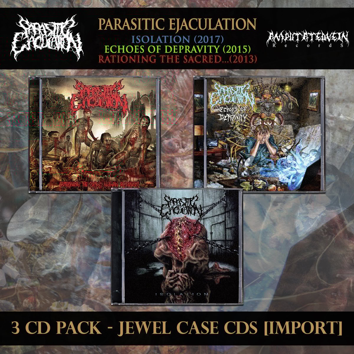 Calling all fans and collectors of the heaviest brutal death metal. With the addition of the brand new physical CD of 2017's 'Isolation' CD, 3 of Parasitic's physical CD releases are now available on Chugcore. All 3 CDs are in Jewel Case format. This pack contains all of the currently available full length album releases by Parasitic Ejaculation.