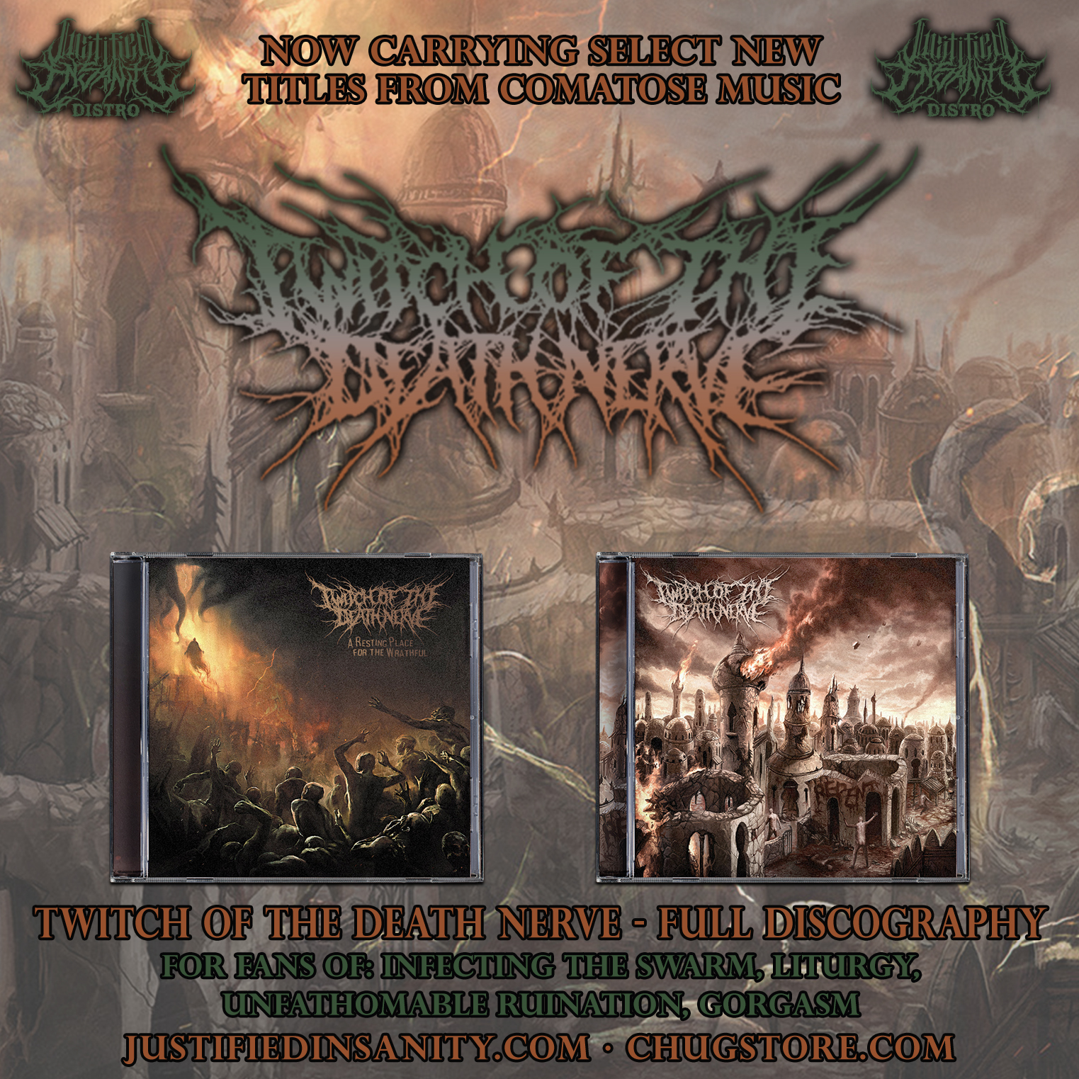 With the addition of the brand new album by Twitch of the Death Nerve a Full Discography bundle is now available from Chugcore. Featuring both their full length album releases. Both CDs are printed in Jewel Case format by Comatose Music.