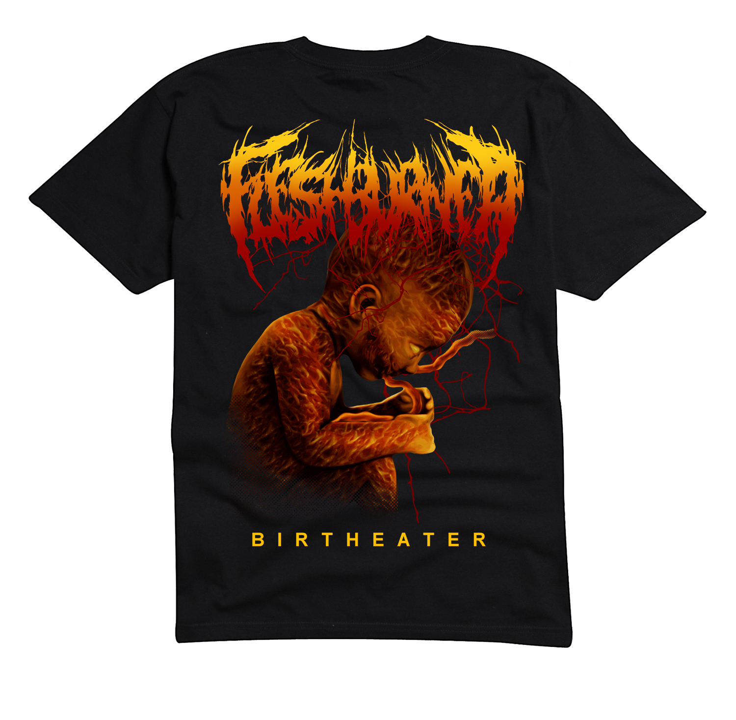 The t-shirt will be a one sided print of the Fleshburner album art and the words "Birtheater" below it. The shirts will be printed on a black Gildan short sleeve shirts with a full color print.
