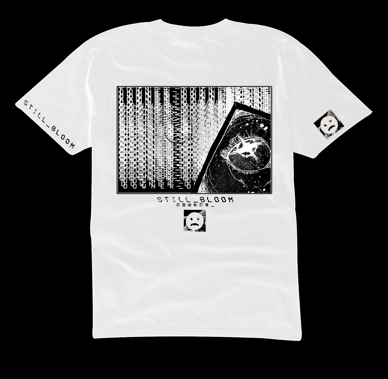 This package contains the T-Shirt only. The shirt will be a white gildan brand t-shirt with a black "Downer_" design print on it. The front includes the design as well as Still_Bloom crest. One sleeve has the words "Still_Bloom" and the other sleeve has the :( Sadface symbol. There will only be a limited run of 25 units of this design printed.