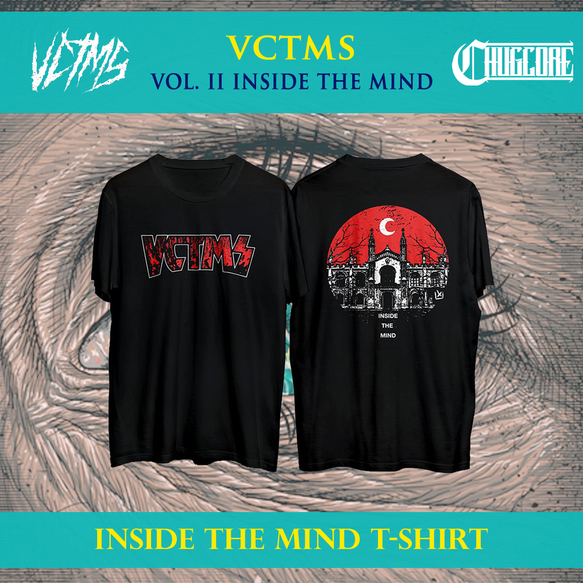 This product contains a shirt design from VCTMS entitled "Inside The Mind". The shirts will be a two-sided printed design of a Church in white and red ink, printed on black Gildan brand t-shirts. Limited sizes remain of this design, which is not to be printed again.
