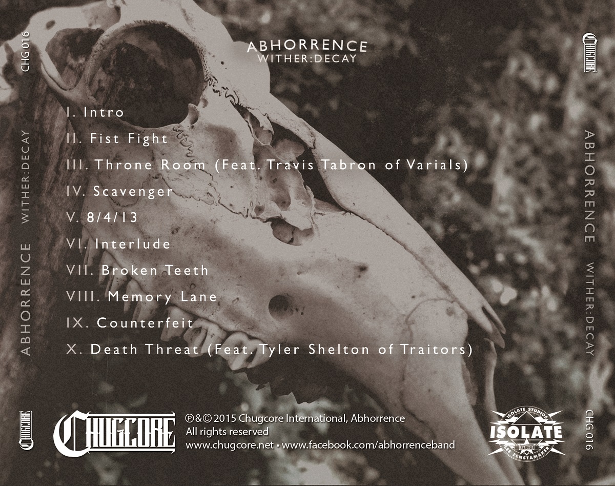 On sale now, Abhorrence's first full length album, 'Wither:Decay' which was released digitally May 30th, 2015.