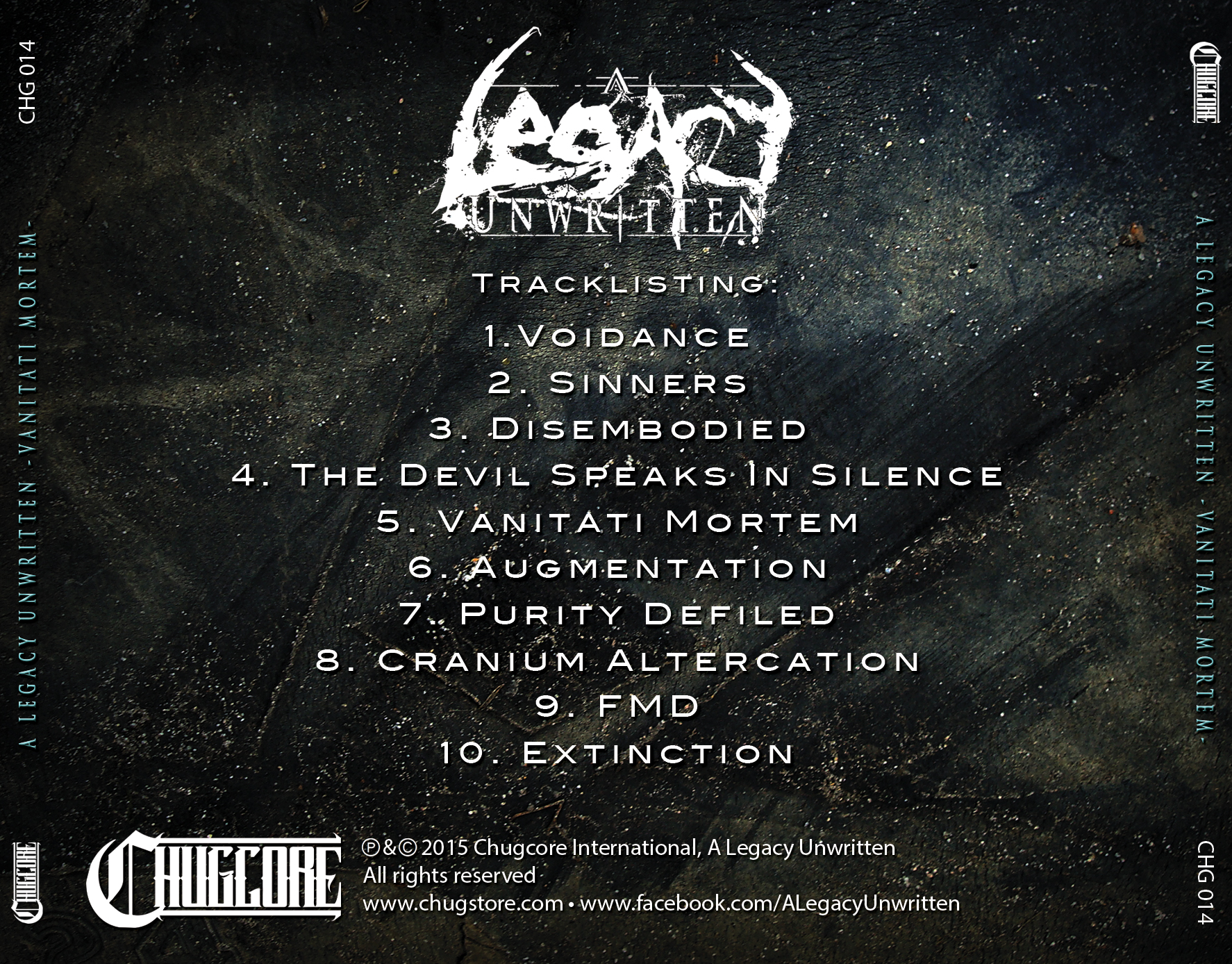On sale now, the BRAND NEW highly anticipated full length album 'Vanitati Mortem' by Georgian Deathcore Heavyweights, A Legacy Unwritten which dropped May 20th, 2015.