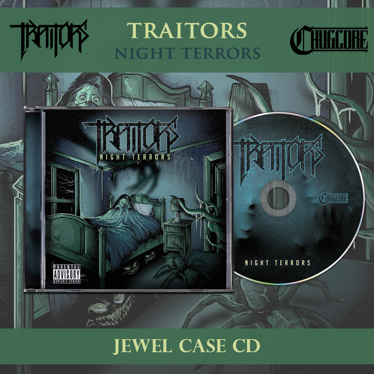 This particular release is for the bands 3rd effort, the EP titled Night Terrors. This release contains 6 tracks. CDs will be in standard size jewel cases. The album will be printed in full color with a 6 panel booklet including all the lyrics. This pressing will the the first official Chugcore discography pressing, meaning it's the first one to have an official Chugcore number.