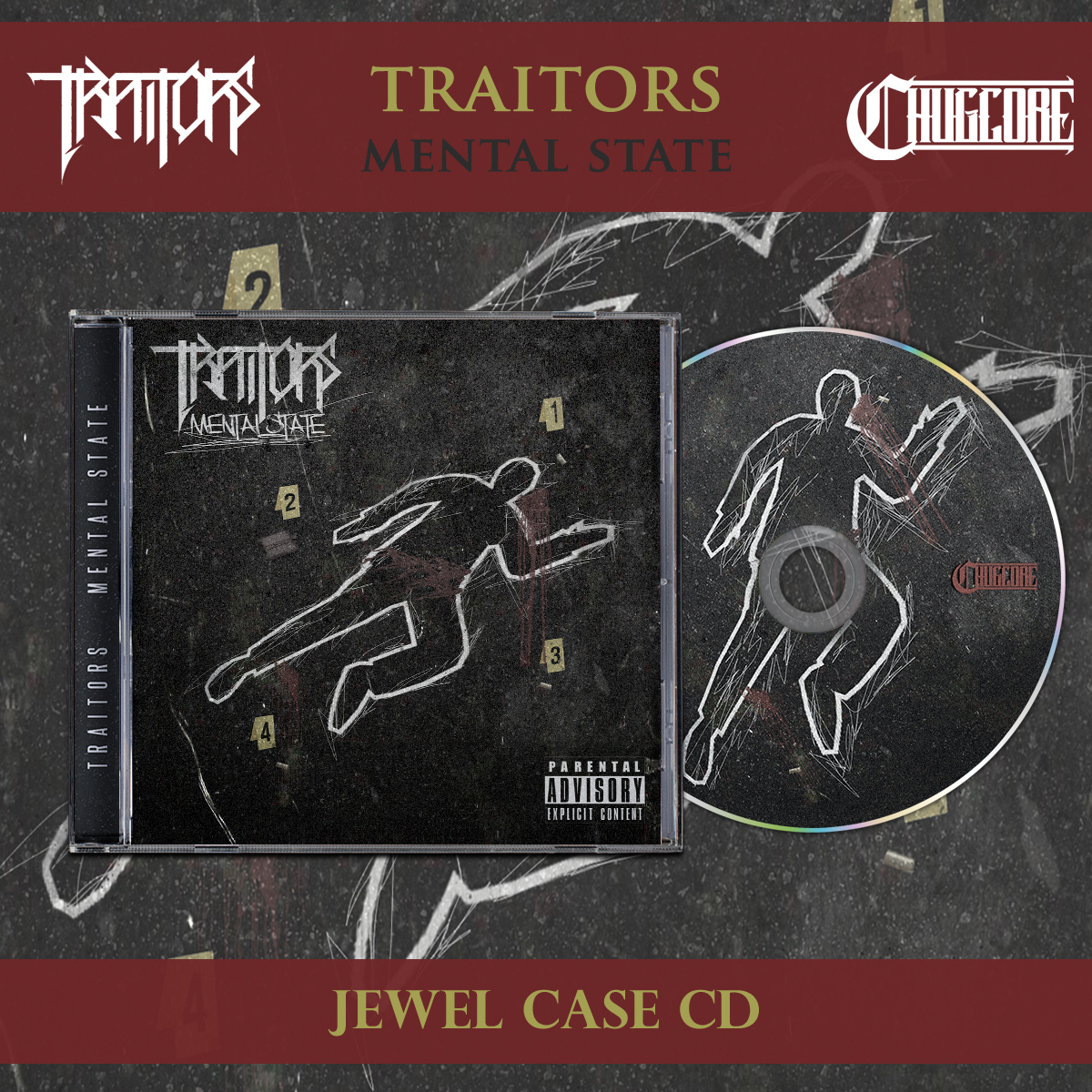 This particular release is for the bands 4th effort, the full length titled Mental State. This release contains 12 tracks including a physical only bonus track. CDs will be in standard size jewel cases. The album will be printed in full color with a 6 panel booklet including all the lyrics. This pressing will the the first official Chugcore discography pressing, meaning it's the first one to have an official Chugcore number.