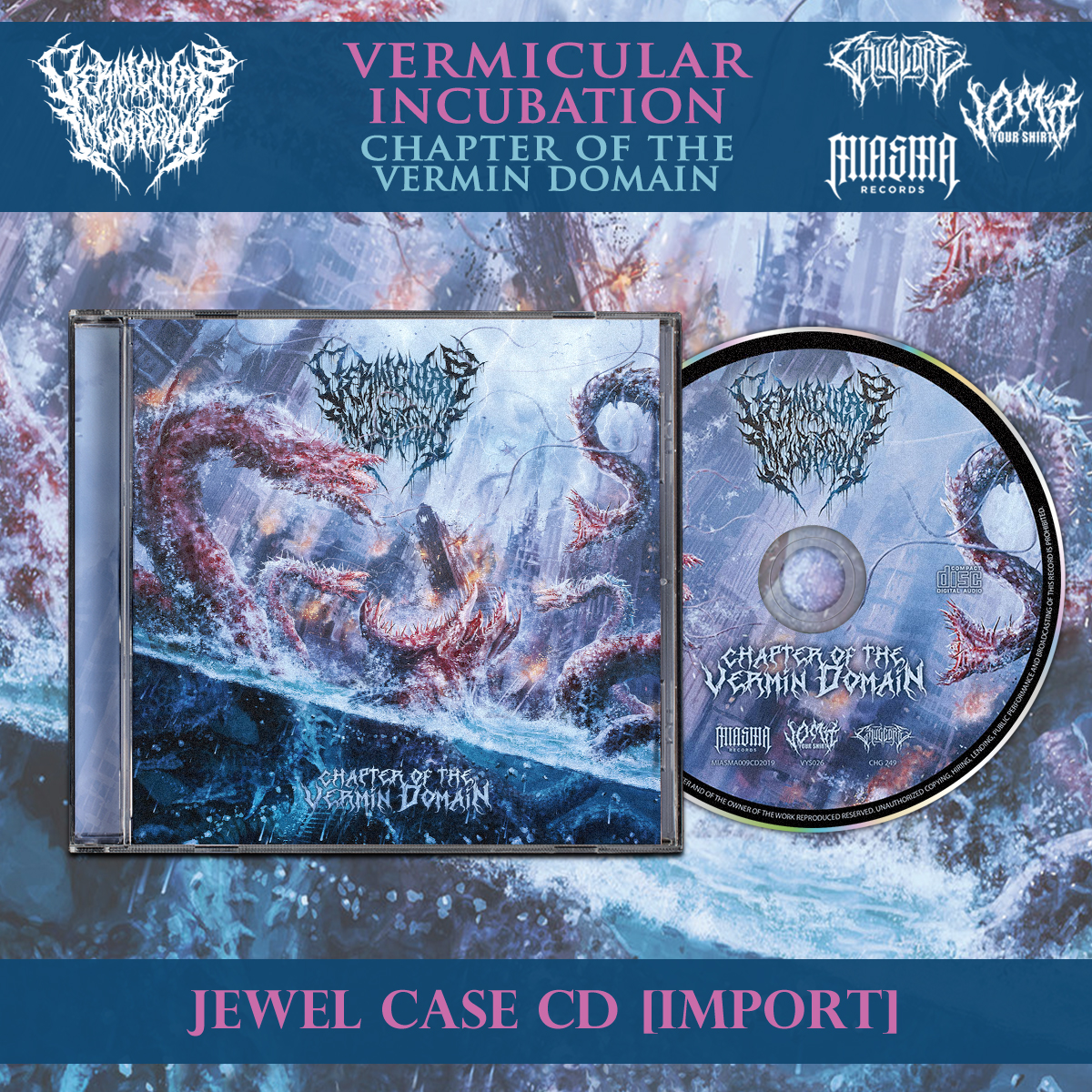 'Chapter of the Vermin Domain' features 11 tracks of venomous slam including guest vocals from Maggot Colony, Slamentation, and Phymerial. With artwork by Armaada art and printed with an 8 panel lyric booklet. A release on a scale this massive deserves worldwide promotion & distribution and thus the album is released internationally as a triple collaboration release distributed by: