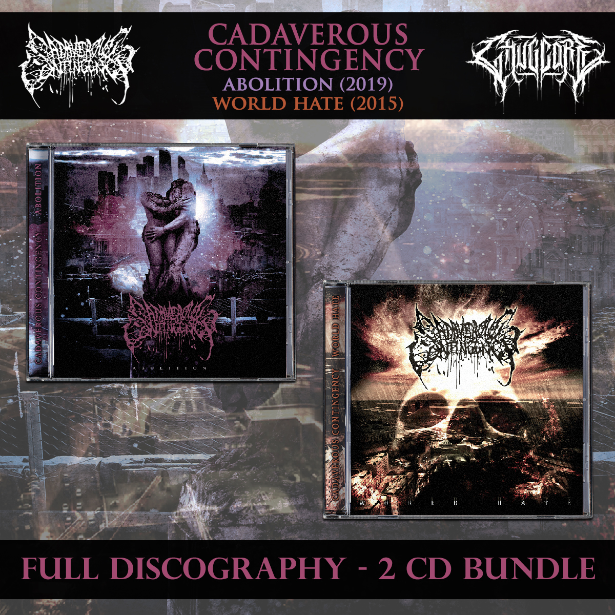 With the addition of the brand new physical re-presses of 'Abolition' and 'World Hate'', a complete Cadaverous Contingency discography is now available on Chugcore, both CDs being in Jewel Case format. This pack contains both of the current albums by CC which is their full discography up until this point.