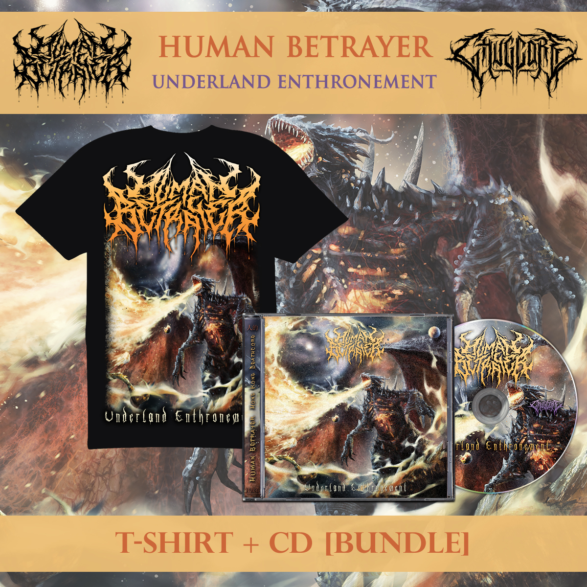 This bundle contains both the CD and the T-shirt for 'Underland Enthronement'. The shirt be a 1 sided-design featuring the 'Underland Enthronement' artwork and Orange/Yellow band logo. Printed on black Gildan brand t-shirts.