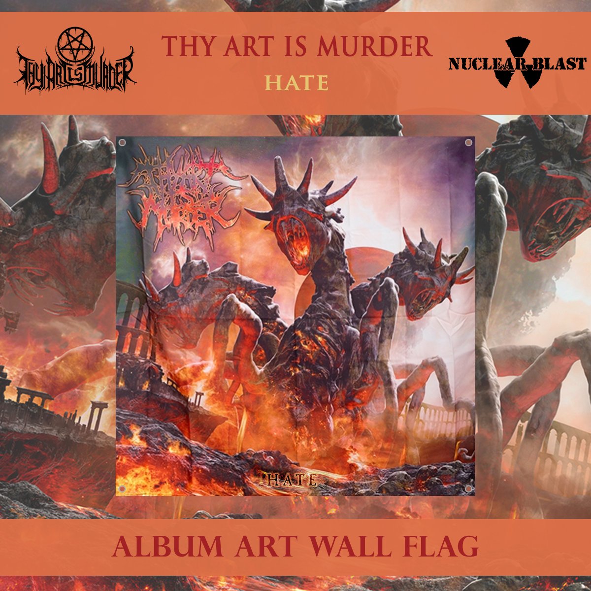 This flag contains the official album artwork of 'Hate' printed in large format. The flag contains grommets in the corners for easy hanging. This merch item is printed & received from IndieMerch Store.