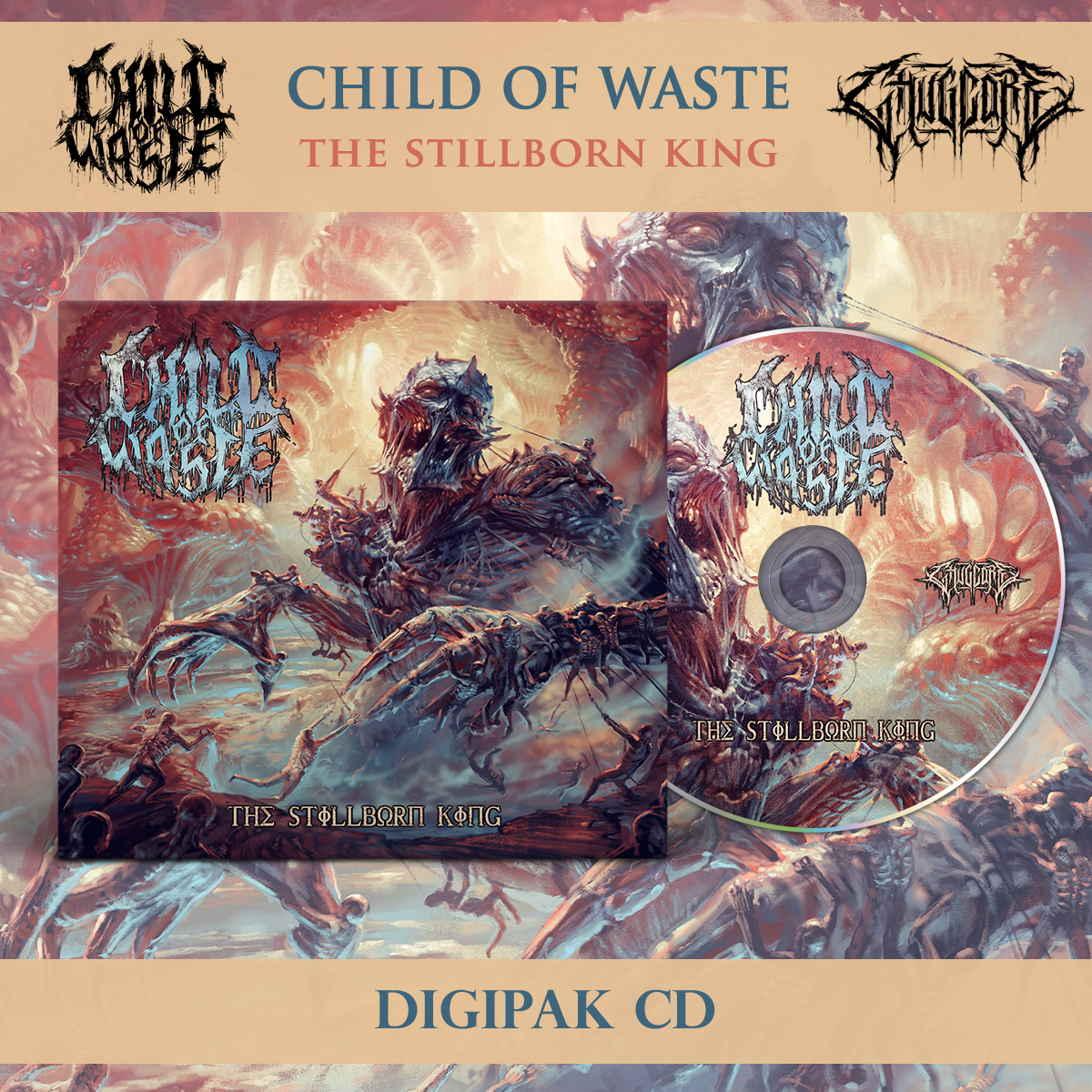 Child of Waste unveil their crushing debut EP release 'The Stillborn King'. Unlocking the beast within, Child of Waste bring 6 tracks of maximum annihilation with melodic and sweeping guitar riffs, brutal sound clips, slamming beatdowns, along with chugging for days. The 5 piece Euro band continues to push the boundaries with their style of Brutal Deathcore and melodic slams. The 6 panel digipak contains the lyrics on the side panels.