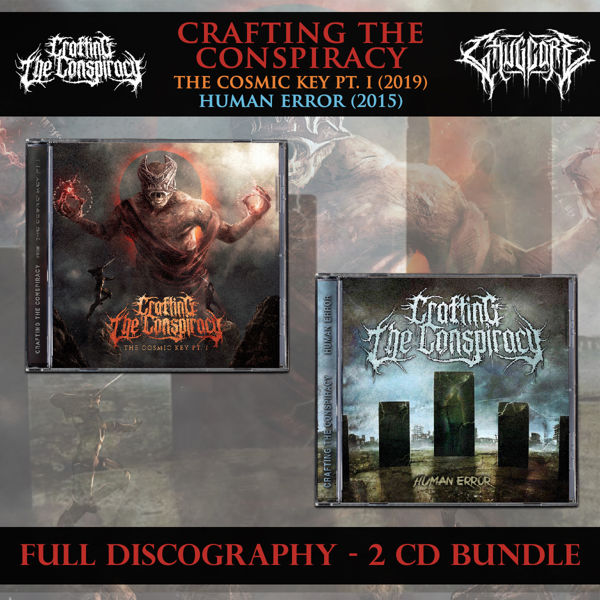 With the addition of the brand new physical CD of 'The Cosmic Key Pt. I', a complete Crafting the Conspiracy discography is now available on Chugcore, both CDs being in Jewel Case format. This pack contains both of the current albums by CTC which is their full discography up until this point.