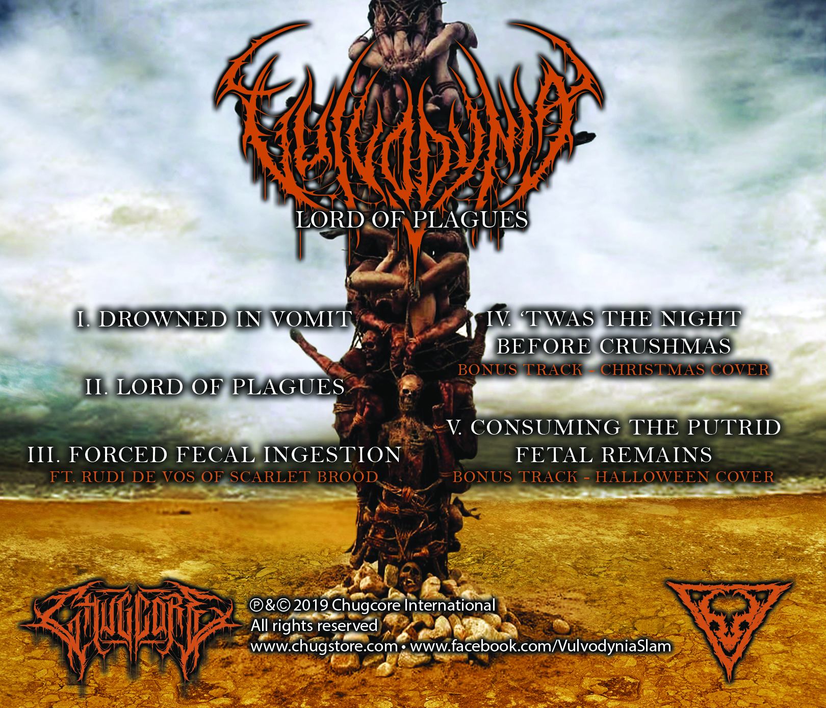 This product is the 'Lord of Plagues' album which was originally released on May 10, 2014 and is the debut release by Vulvodynia. The album originally contains only 3 tracks, so we beefed it up by adding 2 RARE Cover tracks by Vulvo not available on any of their albums: the Christmas Cover and the Halloween Cover which are featured as 2 bonus tracks.